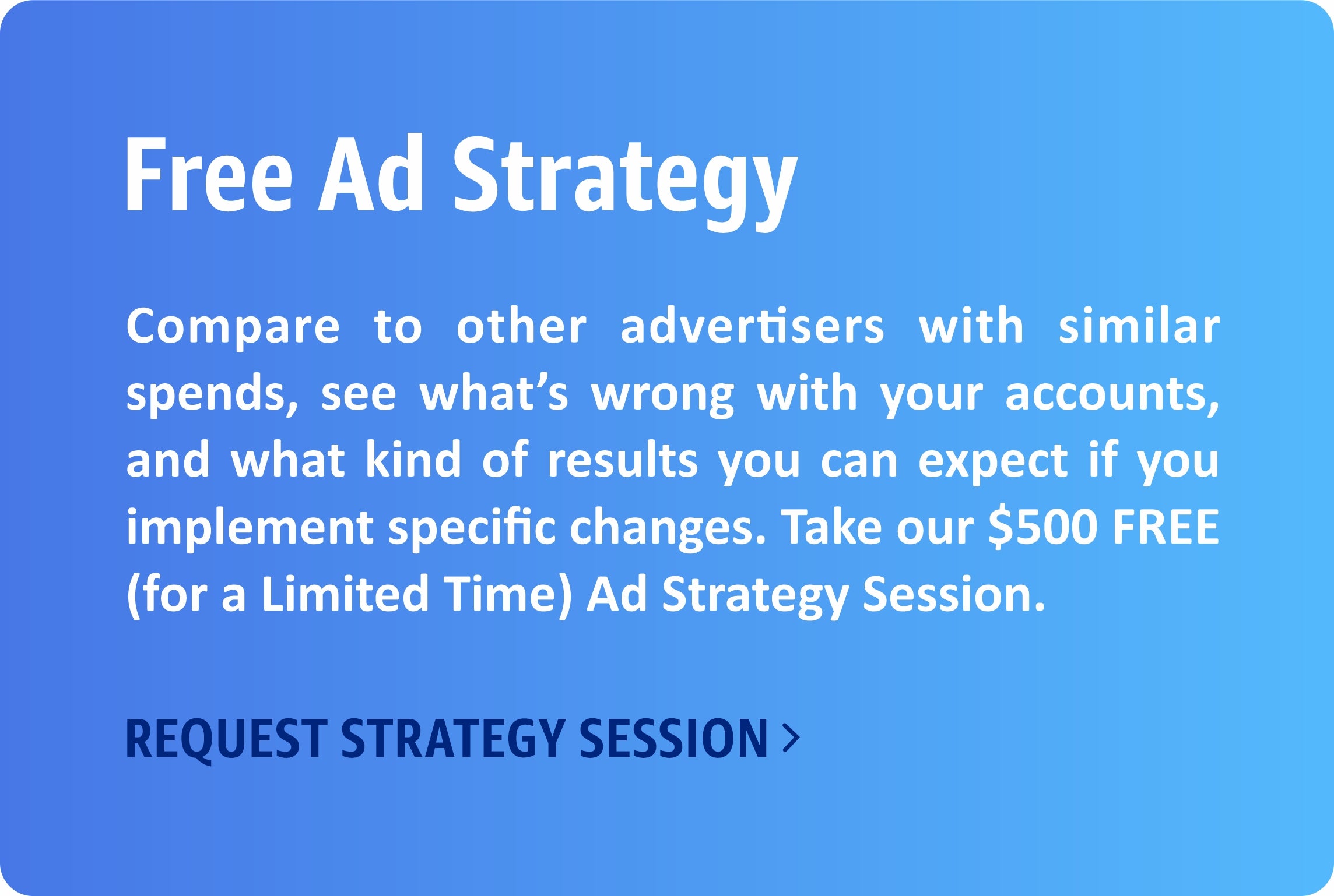 If you want to improve your ad performance – to dramatically improve your ROI, Conversion rate and profits, then claim your 1 Hr FREE (for limited time) Ad Strategy session.
