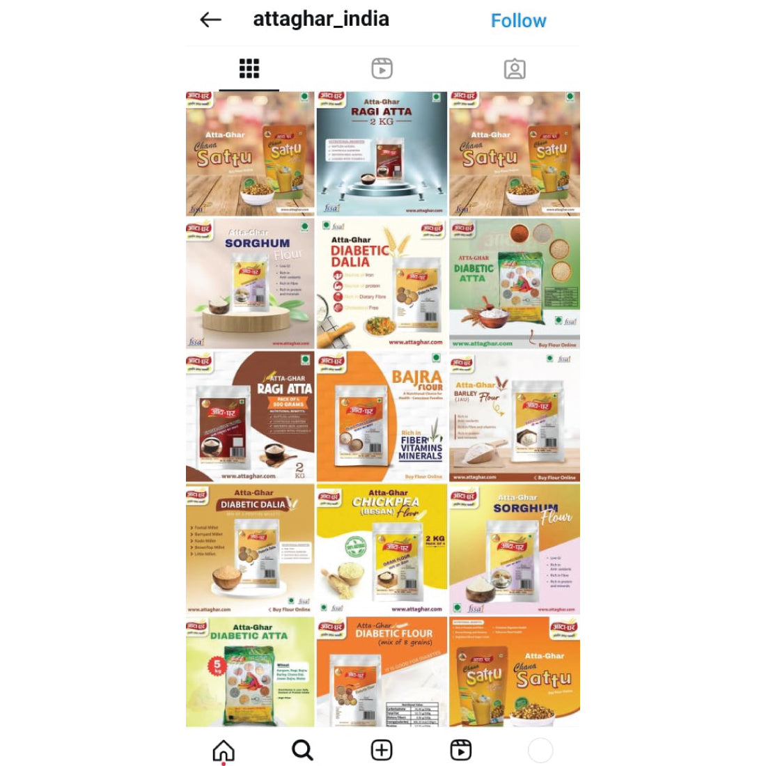 At WebInterest, we enhance Attaghar.com's social media by showcasing their range of healthy flours through eye-catching visuals, nutritional benefits, and engaging content. Our strategy focuses on highlighting unique products like "Diabetic Atta" and "Ragi Atta" to educate, engage, and build trust with health-conscious customers, driving growth and online sales.